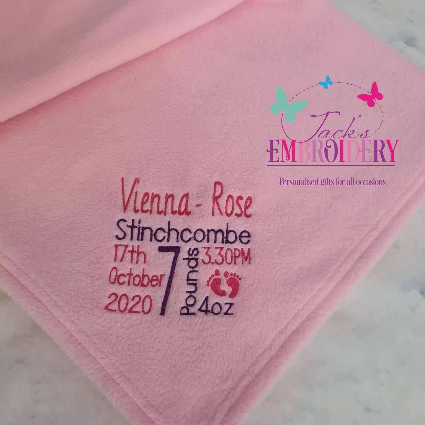 Ellie Blanket – A White Fleece Blanket measures approx 100cm x 72cm , embroidered with the gorgeous Ellie design and Personalised with a name of choice , stitching can be done in any colours you choose , just leave your … Read More