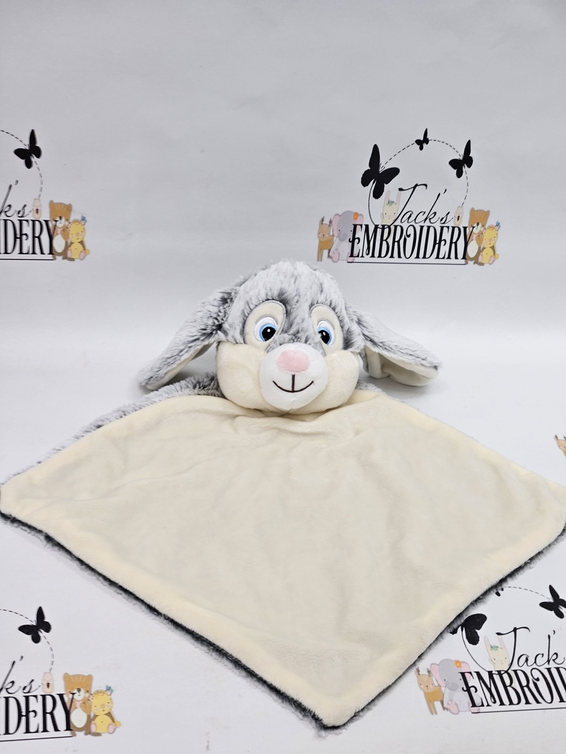 Personalised with design and name or Birth details , the Taggie Blankets are super soft and are approx. 14″ they are minky one side and satin the other , design will be stitched on the minky side , available in Pink , Blue or white